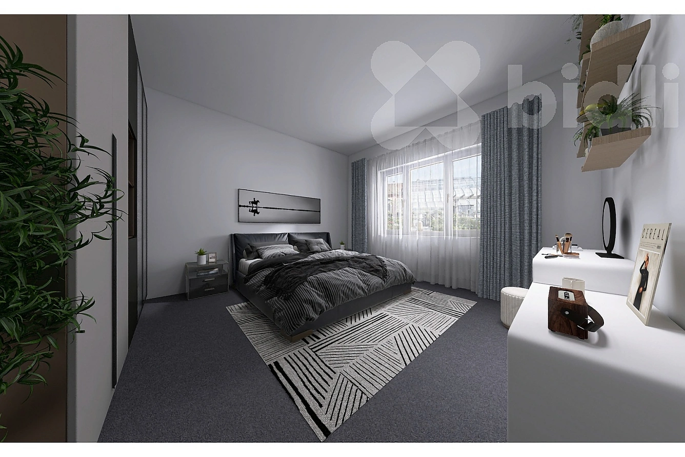 Po vstupu do bytu vás přivítá prostorná chodba. Hned vpravo se nachází první pokoj - pro lepší představu o jeho potenciálu jsme pro vás připravili vizualizaci, jak může prostor vypadat po nastěhování. Rovně z chodby pak vstoupíte do druhého, většího pokoje. Obě tyto místnosti jsou orientovány do klidného vnitrobloku, což z nich činí ideální ložnici a dětský pokoj či pracovnu.
