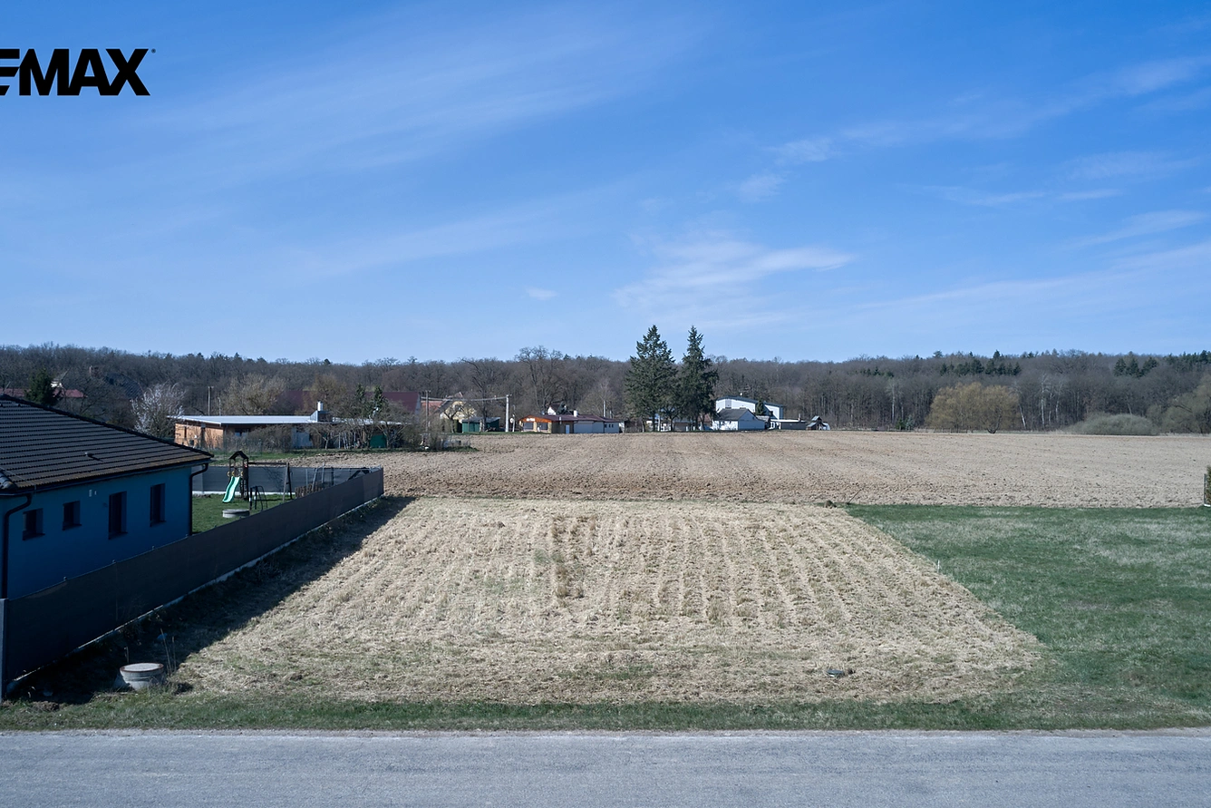 Pozemek ve tvaru pravidelného obdélníku o rozměrech přibližně 20 mx43 m je rovinatý, výborně orientovaný a jeho celková výměra je 1004 m2 (vizualizace umístění rodinného domu na pozemku - foto v inzerci). Obecní vodovodní řád je veden na druhé straně silnice, kanalizace přímo na pozemku a elektřina na hranici pozemku.