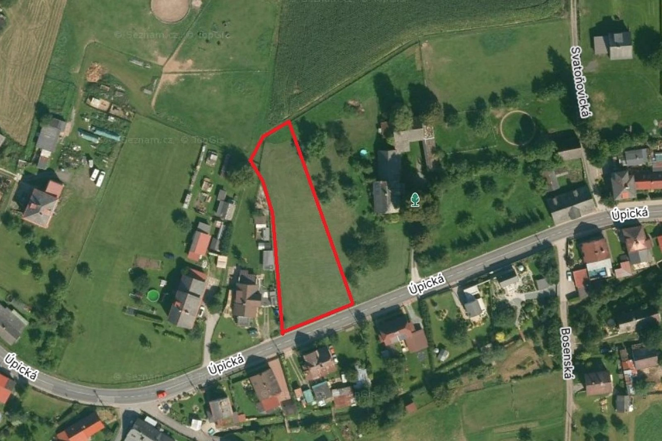 Parcela má tvar nepravidelného obdélníku cca 30 x 80m, severo-jižní orientace. Přístup ze silnice I. třídy. Výhled na celé Jestřebí hory a část Krkonoš.