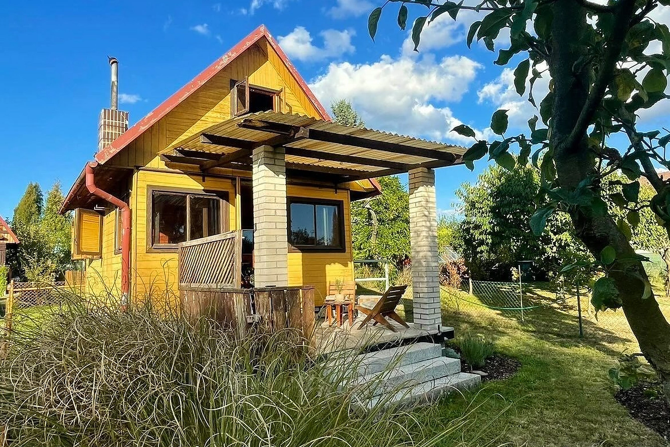 Na zahradě, která má 580 metrů čtverečních je postavena chatka se zastavěnou plochou 22 metrů čtverečních a horní patro se dá využít na přespání. Uvnitř jsou kamna, která bez problémů vytopí celý prostor, takže si tu užijete pohodu nejen v létě, ale i na jaře nebo na podzim. Navíc ne napojena na elektřinu. Zároveň je na pozemku vlastní studna.