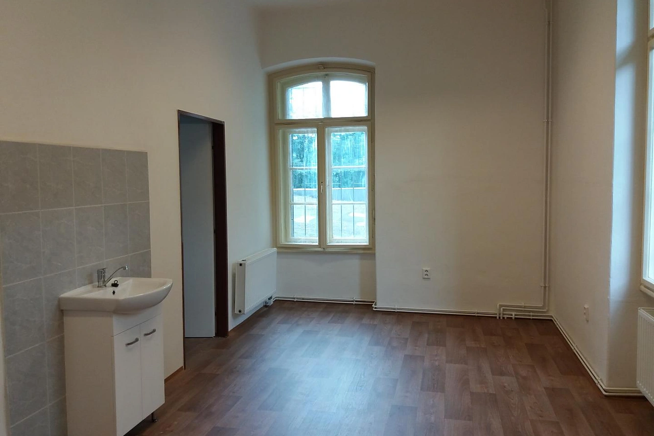 Nabízíme k pronájmu nebytový prostor o výměře 17,57 m2 + společná čekárna s umývadlem + sociální zázemí. Nebytový prostor je vybaven umývadlem s teplou vodou a omyvatelnou podlahou, je proto vhodný pro provozování služeb typu péče o tělo nebo menší ordinaci, dále jako kancelář, obchodní prostor apod. Nachází se v širším centru města Trutnova, v bývalé poliklinice Na Struze čp. 30. Nájemné: 8 614,-Kč/měsíc, cena je již včetně paušálních plateb všech energií, tj. žádné roční doplatky! Přípojka internetu, výhradní parkování přímo u domu.